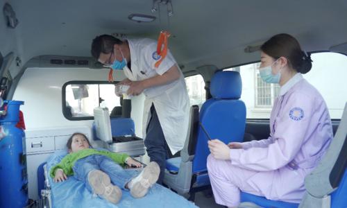 医护人员在救护车上使用LZ-Mine I 拍摄,对患者受伤 情况及时进行现场诊断。